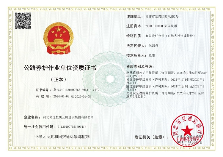河北高速恒質(zhì)公路建設(shè)集團(tuán)有限公司始建于2004年,前身是邯鄲市恒質(zhì)公路建設(shè)集團(tuán)有限公司。2024年7月成為河北高速公路集團(tuán)有限公司二級子公司,現(xiàn)有職工500余人,下轄18家子公司13個(gè)分公司,參股公司3家 ,注冊資本7億元,是一家集公路工程施工、路用材料研發(fā)生產(chǎn)、試驗(yàn)檢測、瀝青貿(mào)易、公鐵物流于一體的多元化、綜合性單位,國家級高新技術(shù)企業(yè),河北省專精特新中小企業(yè),河北省首家瀝青拌合環(huán)保引領(lǐng)性企業(yè)。公司擁有公路工程總承包壹級、公路交通工程(公路安全設(shè)施)專業(yè)承包壹級、機(jī)電工程施工總承包貳級、電力工程施工總承包貳級、市政公用工程施工總承包貳級、建筑工...